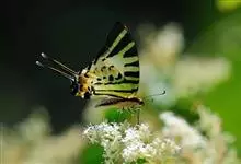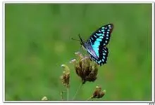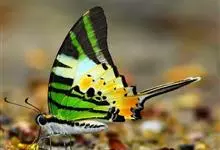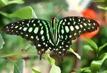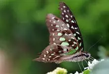 青带凤蝶Graphium sarpedon ,又名青凤蝶,是最普遍的中型凤蝶,飞行速度很快。青带凤蝶的翅膀中央有许多浅蓝色的斑点,很整齐地排列成一条直线。这些斑点由上而下逐渐变大,就像一条青色的带子。全部>>