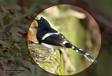 斑背燕尾是鹟科、燕尾属中型鸟类,体长24-25厘米。额至头顶前部白色,其余头、颏、喉、胸黑色,后颈有一白领,背黑色具圆形白色斑点,腰白色,两翅黑色具白色翅斑,尾呈深叉状,黑色、具白色端斑。…全部>>