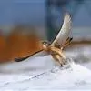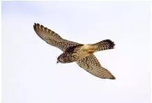 红隼:是隼科、隼属的小型猛禽之一。体重173-335克,体长305-360毫米。翅狭长而尖,尾亦较长,外形和共同爪隼非常相似。雄鸟头蓝灰色,背和翅上覆羽砖红色,具三角形黑斑;腰、尾上覆羽和尾羽蓝灰色,…全部>>