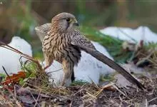 红隼:是隼科、隼属的小型猛禽之一。体重173-335克,体长305-360毫米。翅狭长而尖,尾亦较长,外形和共同爪隼非常相似。雄鸟头蓝灰色,背和翅上覆羽砖红色,具三角形黑斑;腰、尾上覆羽和尾羽蓝灰色,…全部>>