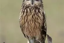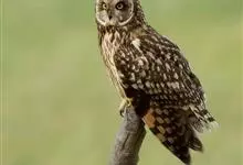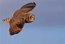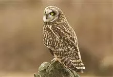 短耳鸮又名小耳木兔、田猫王、夜猫子等,是鸮形目鸱鸮科耳鸮属中小型猛禽动物。成鸟面盘显著,眼周黑色;眼先及内侧眉纹灰白色,面盘余部棕黄色杂以黑色细羽干纹;耳簇羽短小而几乎不外露,…全部>>
