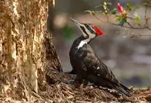 白腹黑啄木鸟,是啄木鸟科、黑啄木鸟属的中型鸟类,体长43-46厘米,头顶具长的红色羽冠,颚纹亦为红色,其余头、颈、胸和上体黑色,腰和腹白色,飞翔时白色腋羽和翅下覆羽亦明显可见。雌鸟头顶黑色,…全部>>