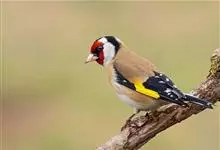 红额金翅雀:共有14个亚种。小型鸟类,体长12-14厘米。额、脸颊和颏朱红色,眼先和眼周黑色,在淡色的头部极为醒目。上体灰褐或乌褐色,尾上覆羽白色,两翅和尾黑色,翅上有黄色斑。下体喉、胸灰褐或乌褐色…全部>>