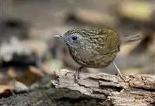 白腹幽鹛,是画眉科幽鹛属鸟类,共有4亚种。雕雄羽色相似。 上体从头到尾包括两题表面概为微椎褐色,两翅和尾沾更多红色。眼先和颚上灰褐色,耳覆羽褐色具族色羽轴纹,颈与背同色。额、喉白色具矢状黑斑,…全部>>