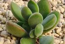 若歌诗是景天科青锁龙属的多肉植物。植株易丛生,茎淡绿色,细柱状,冷凉季节在阳光下会变红色;叶片肉质对生,叶片长可达3-3.5厘米,叶形像微型的汤匙,叶缘微黄或微红色,在充足的光照下,叶片会变得肥厚饱满,…全部>>