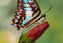 青带凤蝶Graphium sarpedon ,又名青凤蝶,是最普遍的中型凤蝶,飞行速度很快。青带凤蝶的翅膀中央有许多浅蓝色的斑点,很整齐地排列成一条直线。这些斑点由上而下逐渐变大,就像一条青色的带子。全部>>