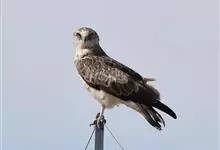 短趾雕:体长62-70厘米,体重1.2-2.3千克。它们的颔、颈和胸部上方呈浅棕色。头部浑圆像猫头鹰般,眼睛呈鲜黄色。身体沉重,上体灰褐,下体白而具深色纵纹,喉及胸单一褐色,腹部具不明显的横斑,…全部>>