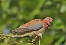 棕斑鸠,是鸽形目鸠鸽科斑鸠属鸟类。整个头和颈淡粉红色,头顶和前额较暗,颊、喉较淡,前颈基部两侧羽毛黑色具宽阔的棕色端斑,使前颈两侧形成黑色斑点状的黑斑。…全部>>