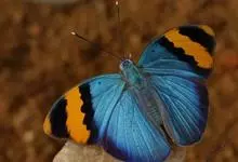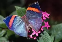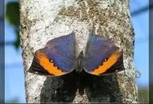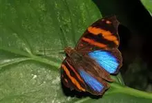 枯叶蛱蝶,又名木叶蝶、树叶蝶等,属于蛱蝶科。翅正面黑褐色,具深蓝色光泽,前翅顶角尖出,顶区有1枚小白点,中部有1条倾斜的橙色斑带,从前缘延伸至Cu室外缘,u室中部有1枚黑色圆斑,…全部>>