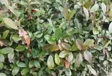 红叶石楠 是蔷薇科,石楠属杂交种,为常绿小乔木或灌木,乔木高可达5米、灌木高可达2米。叶片革质,长圆形至倒卵状、披针形,叶端渐尖,叶基楔形,叶缘有带腺的锯齿,花多而密,复伞房花序,花白色,梨果黄红色,…全部>>