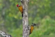 白背啄木鸟共有10个亚种。中等体型,体长25厘米。特征为下背白色,无论雌雄均臀部红色。脚强健,有趾4个,其中2个向前,2个向后,各趾的趾端均具有锐利的爪,巧于攀登树木。尾羽的羽干刚硬如棘,…全部>>