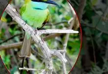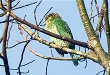 绿拟啄木鸟为鴷形目,须科,拟啄木属的一种。形较大拟啄木鸟略小,体长约260mm。头、颈及胸浅褐而具淡黄白色条纹;喉几为淡黄白色;身体余部草绿色。虹膜棕褐色,眼周裸露部黄色;嘴峰角黄色;跗跖和趾角黄…全部>>