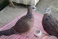 珠颈斑鸠,别名花斑鸠、珍珠鸠、花脖斑鸠、鸪鹪,是鸠鸽科副斑鸠属鸟类。体型中等,体长27~34cm,体重120~205g,雌鸟和雄鸟羽色相似,但雌鸟不如雄鸟羽色亮泽。珠颈斑鸠前额至头顶羽色稍淡,…全部>>