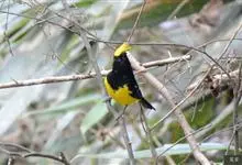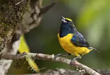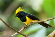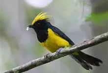 冕雀:共有4个亚种。体长20-21厘米,体重34-49克。具蓬松的黄色长型冠羽。雌鸟似雄鸟,但喉及胸深橄榄黄色,上体沾橄榄色。不会被误认的体大的黄色及黑色山雀。混群栖于原始林及次生林的林冠层,…全部>>