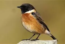 黑喉石鵖,雀形目鹟科石鵖属小型鸣禽,俗名谷尾鸟、黑喉石。其体色为黑褐色。雄鸟头部、背部、两翼及尾黑色,颈侧及翼上具白斑,胸部和腹侧红棕色,腰及尾下覆羽白色。雌鸟体色为褐色,上体具深色纵纹,胸部染棕色,…全部>>