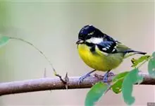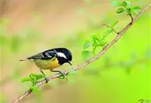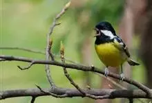 黄腹山雀是雀形目山雀科山雀属鸟类。虹膜褐色或暗褐色;嘴蓝黑色或灰蓝黑色;头、喉胸斑黑色,颊斑、颈后斑白色;上体蓝灰色,腰银白色;翼具两排白色点斑;下胸、腹鲜黄色;尾黑色,…全部>>
