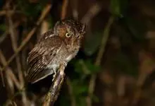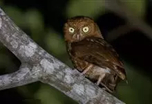 黄嘴角鸮:小型鸟类,体长18-21厘米。的茶黄褐色角鸮。眼黄色,嘴奶油色,特征为无明显的纵纹或横斑,仅肩部具一排硕大的三角形白色点斑。主要栖息于海拔2000米以下的山地常绿阔叶林和混交林中,…全部>>