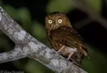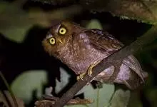 黄嘴角鸮:小型鸟类,体长18-21厘米。的茶黄褐色角鸮。眼黄色,嘴奶油色,特征为无明显的纵纹或横斑,仅肩部具一排硕大的三角形白色点斑。主要栖息于海拔2000米以下的山地常绿阔叶林和混交林中,…全部>>