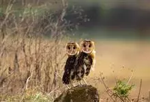 栗鸮:是鸟纲、草鸮科的猫头鹰。体长约29厘米,体重311-360克。是一种中等体型的红褐色鸮。其心形脸庞及时而竖起的“耳朵”与仓鸮甚似。上体红褐而具黑白点斑,下体皮黄偏粉具黑点,脸近粉色。虹膜深褐色,…全部>>