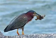 绿鹭:是鹳形目鹭科绿鹭属鸟类。体型小,头顶黑,枕冠亦黑色,上体蝉灰绿色,下体两侧银灰色;前额至后枕及冠羽墨绿色,眼后有一白斑,颊纹黑色;颚纹白色,后颈、颈侧和体侧烟灰色;背部披灰绿色矛状长羽,…全部>>