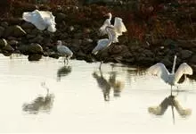 白鹭:白鹭属共有13种鸟类,其中有大白鹭、中白鹭、小白鹭,黄嘴白鹭四种,体羽皆是全白,均称为“白鹭”。这4种白鹭均是中等体型的白色鹭。与牛背鹭的区别在体型较大而纤瘦,嘴及腿黑色,趾黄色,繁殖羽纯白,…全部>>