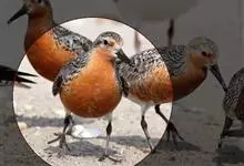 红腹滨鹬,是鹬科、滨鹬属的小型涉禽,体长23-25厘米,嘴较短而直、黑色,脚亦甚短、绿色。体较粗胖。夏季上体灰褐色具黑色中央纹,背具棕栗色和白色斑纹和羽缘,头侧和整个下体栗红色。冬季棕红色消失,…全部>>