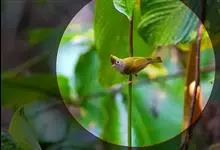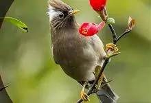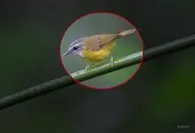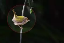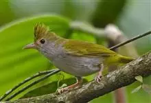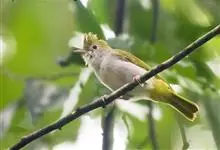 白腹凤鹛是绿鹃科、绿凤鹛属的小型鸟类,体长10-12厘米。上体从头到尾黄绿色,有短的羽冠,头顶微具黑色羽轴纹;眼先、眼周,耳羽和下体灰白色,尾下覆羽黄色。虹膜褐色或红褐色,上嘴浅褐色或肉褐色,…全部>>