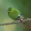 火尾绿鹛是莺科、绿鹛属小型鸟类,体长11-14厘米。上体绿色,头顶至枕具黑色鳞状斑,眼先和眼后黑色,眉纹黄绿色。两翅黑色具黄色和红色翅斑及白色端斑,极为醒目。中央一对尾羽绿色,外侧尾羽鲜红色。…全部>>