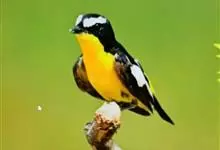 白眉姬鹟是小型鸟类,体长11-14厘米。雄鸟上体大部黑色,眉纹白色,在黑色的头上极为醒目。腰鲜黄色,两翅和尾黑色,翅上具白斑。下体鲜黄色。雌鸟上体大部橄榄绿色。腰鲜黄色,翅上亦具白斑。下体淡黄绿色。…全部>>