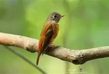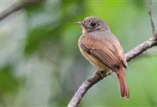 棕尾褐鹟:体重9-16克;体长109-122毫米,是一种体型略小的红褐色鹟。眼圈皮黄,喉块白,头石板灰色,背褐,腰棕色,下体白,胸具褐色横斑,两胁及尾下覆羽棕色。通常具白色的半颈环。…全部>>