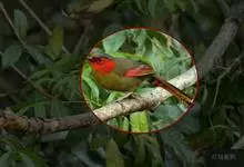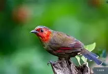 红翅薮鹛是噪眉科、薮鹛属中型鸟类,体长21-24厘米。头顶灰褐色,头侧和颈侧赤红色,上体橄榄褐色,翅上具红色块斑,尾具红色或橙黄色块斑,下体灰色沾褐。虹膜褐色或红色,嘴黑色,脚暗褐色或淡灰褐色。…全部>>