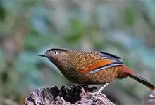 蓝翅噪鹛:噪鹛科、彩翼噪鹛属动物。中型鸟类,体长22-25厘米。上体棕橄榄褐色密被黑色鳞状斑,眼蓝白色,眼上有一长而宽阔的黑色眉纹,从眼先直到颈侧。下体棕褐色被黑色鳞状斑;尾上和尾上覆羽栗色,…全部>>