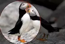 角嘴海雀,是海雀科、角嘴海雀属的中型海鸟,体长32-41厘米,嘴短而粗呈圆锥状、橙色。夏羽上嘴基部有一个三角形的突出物,形状如角。头两侧各有两条由白色丝状饰羽组成的纵带,分别位于眼上和眼下后方的头侧…全部>>