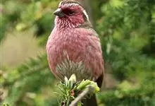藏朱雀:全长约17-18厘米。雄鸟头部深红色具光辉,喉部暗红色具白色点斑;背部灰白色,各羽具玫瑰红色羽端,形成许多斑纹;腰部淡玫瑰红色;翅暗褐色,沾灰白,羽端沾玫瑰红或灰白色;尾暗棕色,端缘玫瑰红色…全部>>