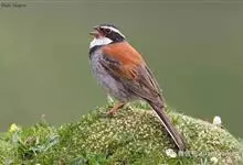 山麻雀:小型鸟类,体长13-15厘米。雄鸟上体栗红色,背中央具黑色纵纹,头棕色或淡灰白色,颏、喉黑色,其余下体灰白色或灰白色沾黄。雌鸟上体褐色具宽阔的皮黄白色眉纹,颏、喉无黑色。…全部>>