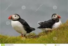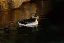 角海鹦:是鸻形目海雀科的鸟类,体重581-648克,体长约32厘米,翼展18-20厘米。是一种身体结实的鸟类,蹼脚、翅膀短,擅长游泳捕鱼,而在陆地上行走时则显得僵硬、步履蹒跚。有一张大嘴巴,呈三角形…全部>>