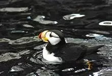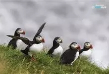 北极海鹦是海雀科的一种海鸟,体长26-38厘米,体重约490克。冠为黑色,脸颊灰色,腹部白色。喙大,为红黑色,腿为橙色,与其羽毛成为鲜明对比。冬天在海上蜕毛,失去一些鲜艳的脸部特征。成年雄性和雌性的…全部>>