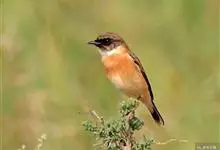 黑喉石鵖,雀形目鹟科石鵖属小型鸣禽,俗名谷尾鸟、黑喉石。其体色为黑褐色。雄鸟头部、背部、两翼及尾黑色,颈侧及翼上具白斑,胸部和腹侧红棕色,腰及尾下覆羽白色。雌鸟体色为褐色,上体具深色纵纹,胸部染棕色,…全部>>
