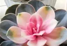 紫珍珠是景天科石莲花属的多年生肉质草本植物。植株中小型;叶片肉质,匙形,呈莲座状紧密排列;叶片粉紫色,叶缘呈粉白色,光照充足时颜色亮丽,不足时叶色会呈现深绿色或灰绿色,叶面光滑,被轻微白粉,…全部>>