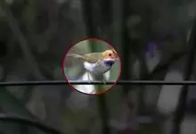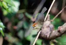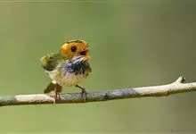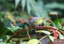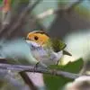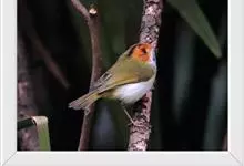 棕脸鹟莺:体长10厘米,是一种色彩亮丽而有特色的莺鸟。头栗色,具黑色侧冠纹。上体绿,腰黄色。下体白,颏及喉杂黑色点斑,上胸沾黄。与栗头鹟莺的区别在头侧栗色,白色眼圈不显著且无翼斑。…全部>>