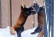 小熊猫:是小熊猫科、小熊猫属的一种动物。雌雄相似,不存在二态性。外形像猫,但较猫肥大,全身红褐色。圆脸,吻部较短,脸颊有白色斑纹。耳大,直立向前。四肢粗短,为黑褐色。尾长、较粗而蓬松,…全部>>