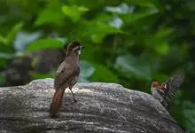 白颊噪鹛是雀形目噪鹛科噪鹛属鸟类,又称土画眉、小画眉、小噪鹃。成鸟额至头顶栗褐色,长眉纹、眼先和颊纹棕白色,眼后至耳羽深褐色,…全部>>