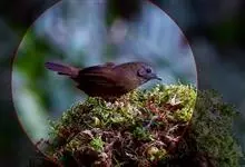白腹幽鹛,是画眉科幽鹛属鸟类,共有4亚种。雕雄羽色相似。 上体从头到尾包括两题表面概为微椎褐色,两翅和尾沾更多红色。眼先和颚上灰褐色,耳覆羽褐色具族色羽轴纹,颈与背同色。额、喉白色具矢状黑斑,…全部>>