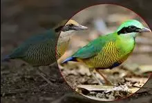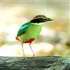 绿胸八色鸫:是雀形目八色鸫科的鸟类,共有12个亚种。体长为16-18厘米,体重65-69克。体型圆胖,尾短,腿长。头黑,上体绿色,两翼深色而具白色斑纹,头顶至后枕深褐,胸及腹部苹果绿,臀亮红。…全部>>