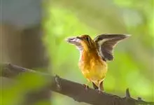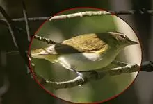 白腹凤鹛是绿鹃科、绿凤鹛属的小型鸟类,体长10-12厘米。上体从头到尾黄绿色,有短的羽冠,头顶微具黑色羽轴纹;眼先、眼周,耳羽和下体灰白色,尾下覆羽黄色。虹膜褐色或红褐色,上嘴浅褐色或肉褐色,…全部>>