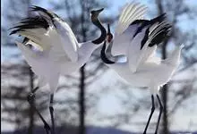 丹顶鹤:是鹤科、鹤属的一种大型涉禽,体长120-160厘米。颈、脚较长,通体大多白色,头顶鲜红色,喉和颈黑色,耳至头枕白色,脚黑色,站立时颈、尾部飞羽和脚黑色,头顶红色,…全部>>