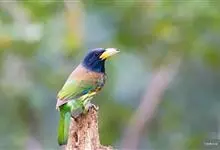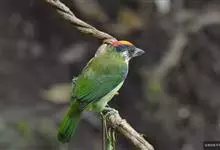 金喉拟啄木鸟,是须鴷科、拟啄木鸟属的鸟类。金喉拟啄木鸟为小型鸟类,体长19-24厘米。额深红色,头顶金黄色,后枕具一大块深红色斑,耳羽和头侧银灰色,上体草绿色,颏和上喉金黄色,下喉淡银灰色,…全部>>