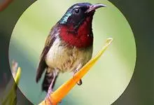 红胸啄花鸟:体重5-10克,体长60-92毫米。体形纤小。雄鸟上体呈辉亮的金属绿色;下体棕黄,胸部具一朱红色块斑,极易与其他啄花鸟区别。雌鸟上体呈橄榄绿,下体棕黄色。虹膜褐色,嘴褐黑色或角灰色,…全部>>