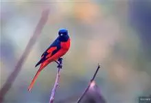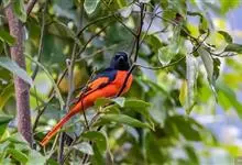灰喉山椒鸟:共有8个亚种。体长18-22厘米。雄鸟头部和背亮黑色,腰、尾上覆羽和下体朱红色,翅黑色具一大一小的两道朱红色翼斑。中央尾羽黑色,外侧尾羽基部黑色,端部红色。…全部>>