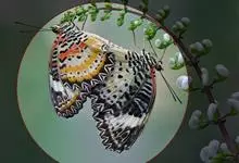 优红蛱蝶:翼展4.5-12厘米。是一种美丽的蝴蝶。色彩鲜艳,花纹相当复杂。前足相当退化,短小无爪。前翅R脉5条,常共柄。卵呈半圆球形。幼虫头上常有突起,体节上有枝刺,腹足趾钩1至3序中列式。蛹为垂蛹。全部>>